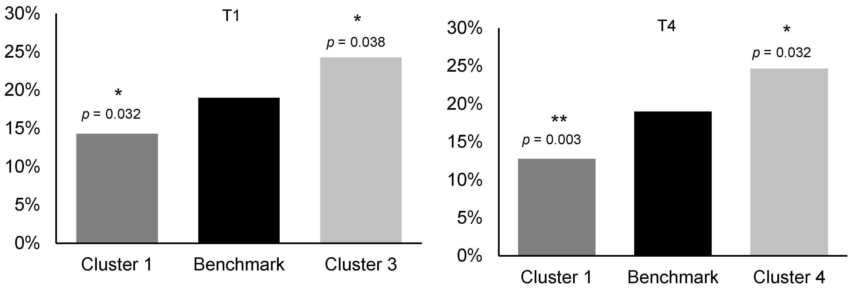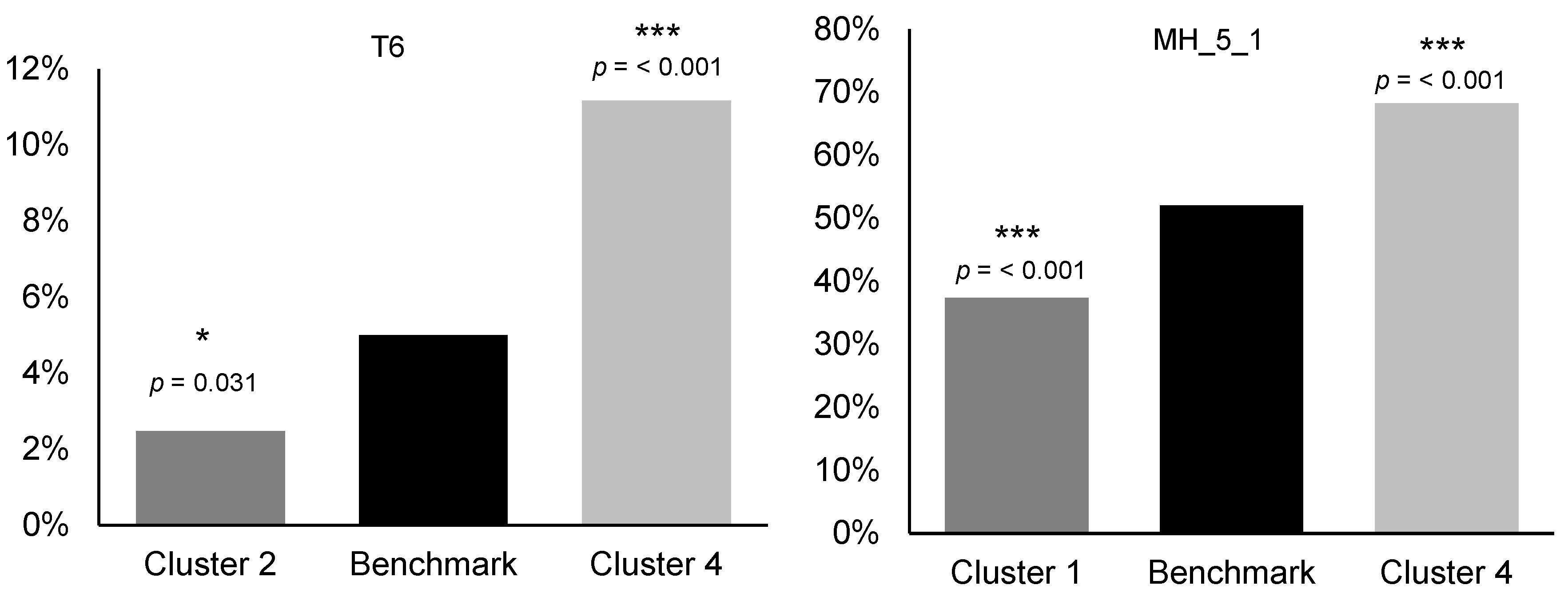 | Variable | Benchmark | Cluster 1 | Cluster 2 | Cluster 3 | Cluster 4 | Cluster 5 | Cluster 6 | |