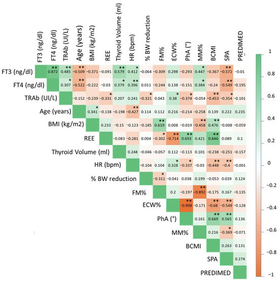 - Hu, H.Y.; Kato, Y. Body composition assessed by bioelectrical impedance analysis (BIA) in patients with Graves’ disease before and after treatment. Endocr. J. 1995, 42, 545–550. [Google Scholar] [CrossRef][Green Version]