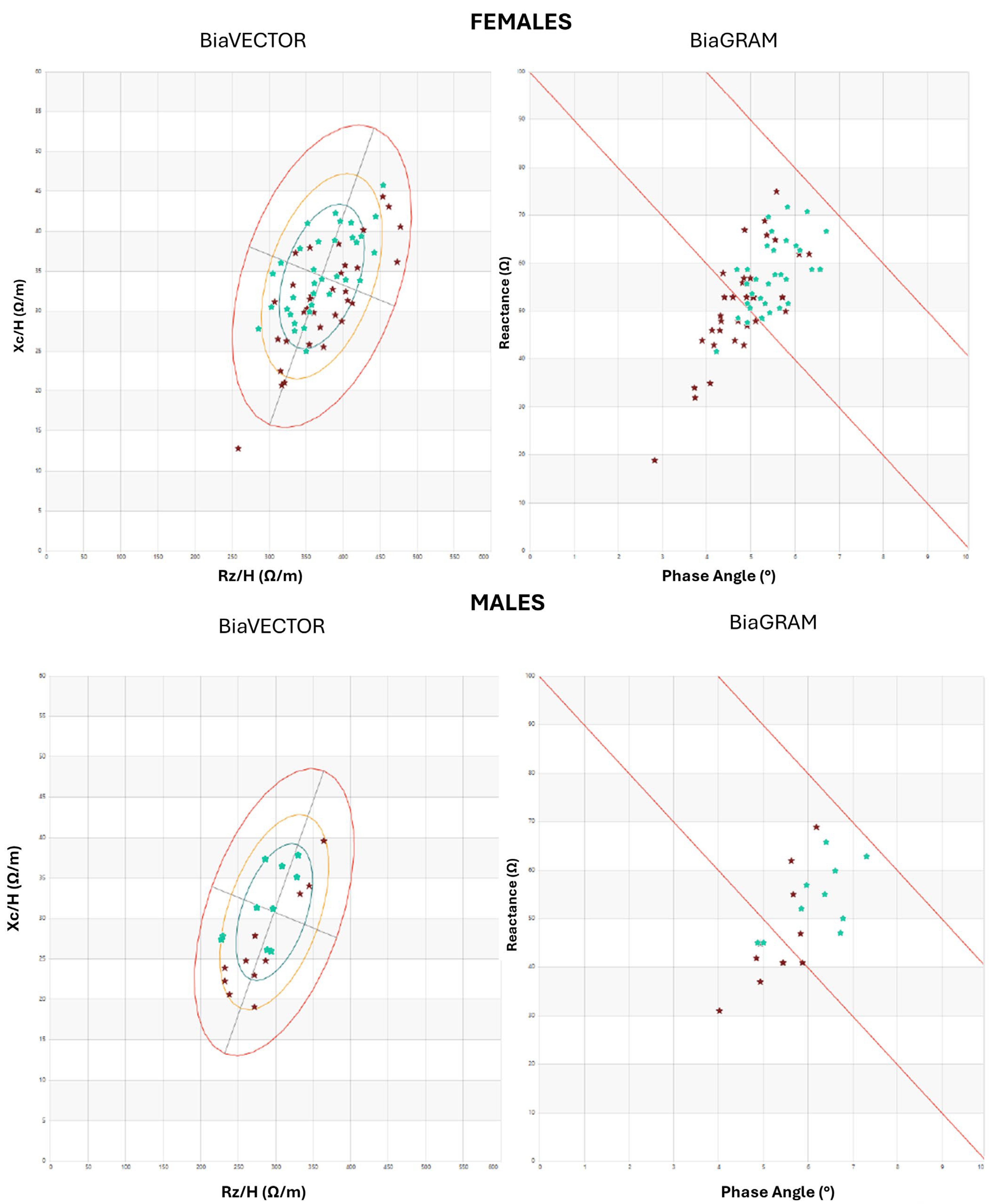 - Norman, K.; Stobäus, N.; Zocher, D.; Bosy-Westphal, A.; Szramek, A.; Scheufele, R.; Smoliner, C.; Pirlich, M. Cutoff percentiles of bioelectrical phase angle predict functionality, quality of life, and mortality in patients with cancer. Am. J. Clin. Nutr. 2010, 92, 612–619. [Google Scholar] [CrossRef]