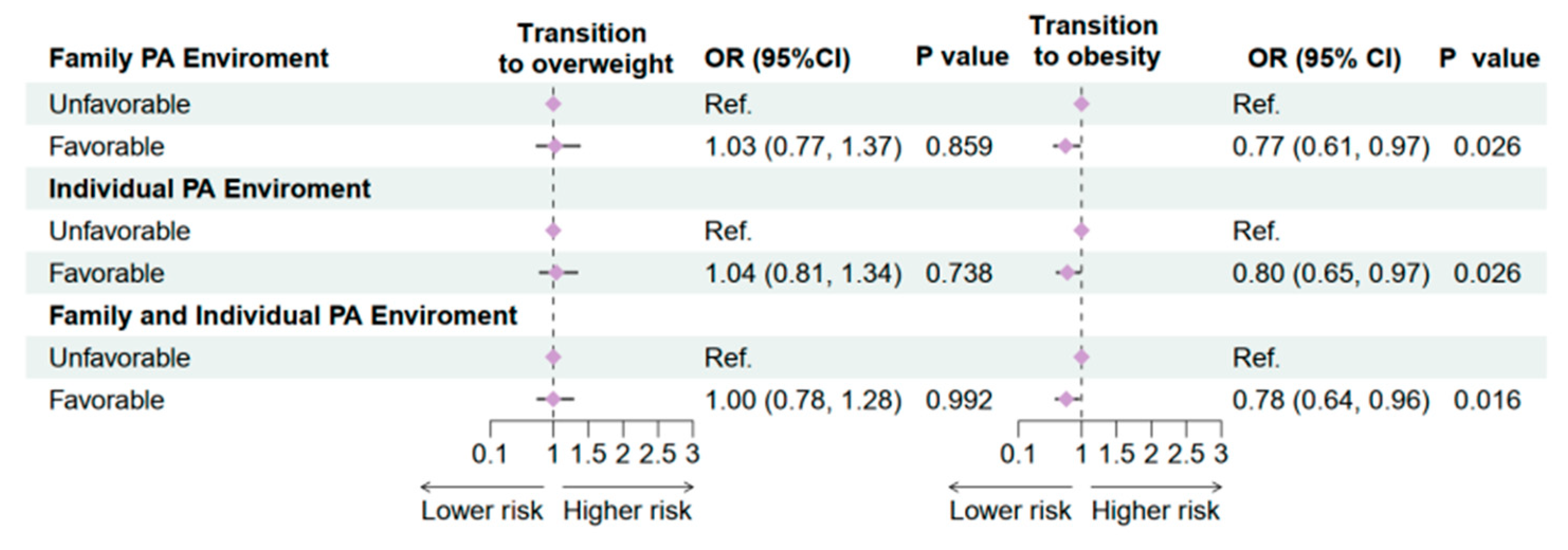 3.1. Association Between Family and Individual Physical Activity Environments and Obesity Transitions