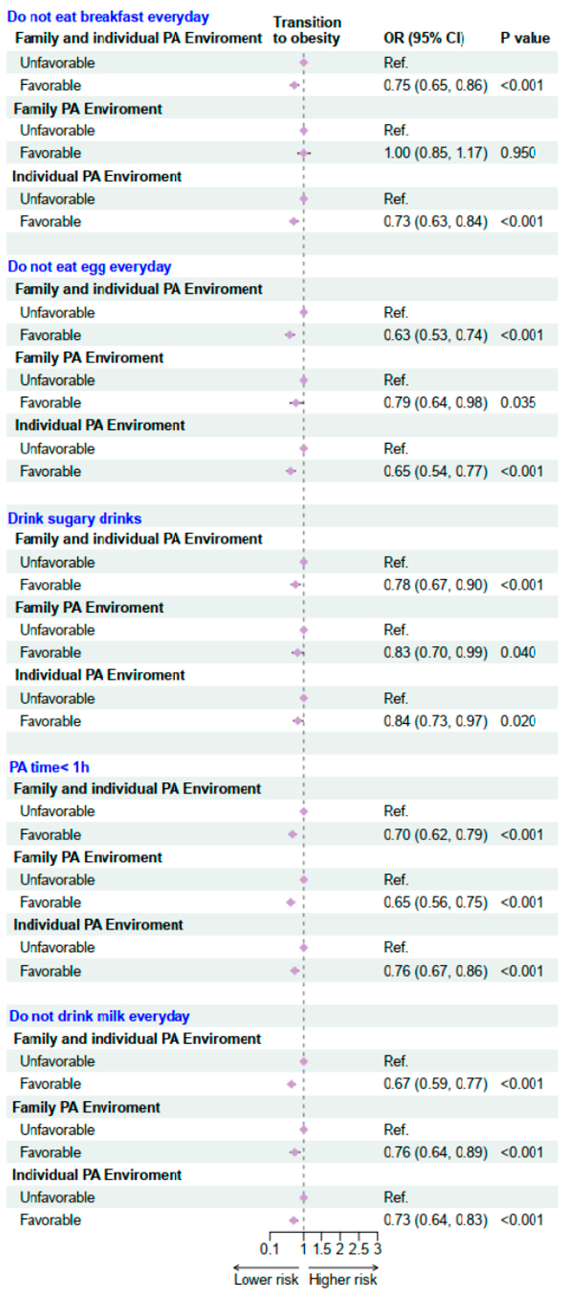 | Family and individual PA environment | <0.001 | |||