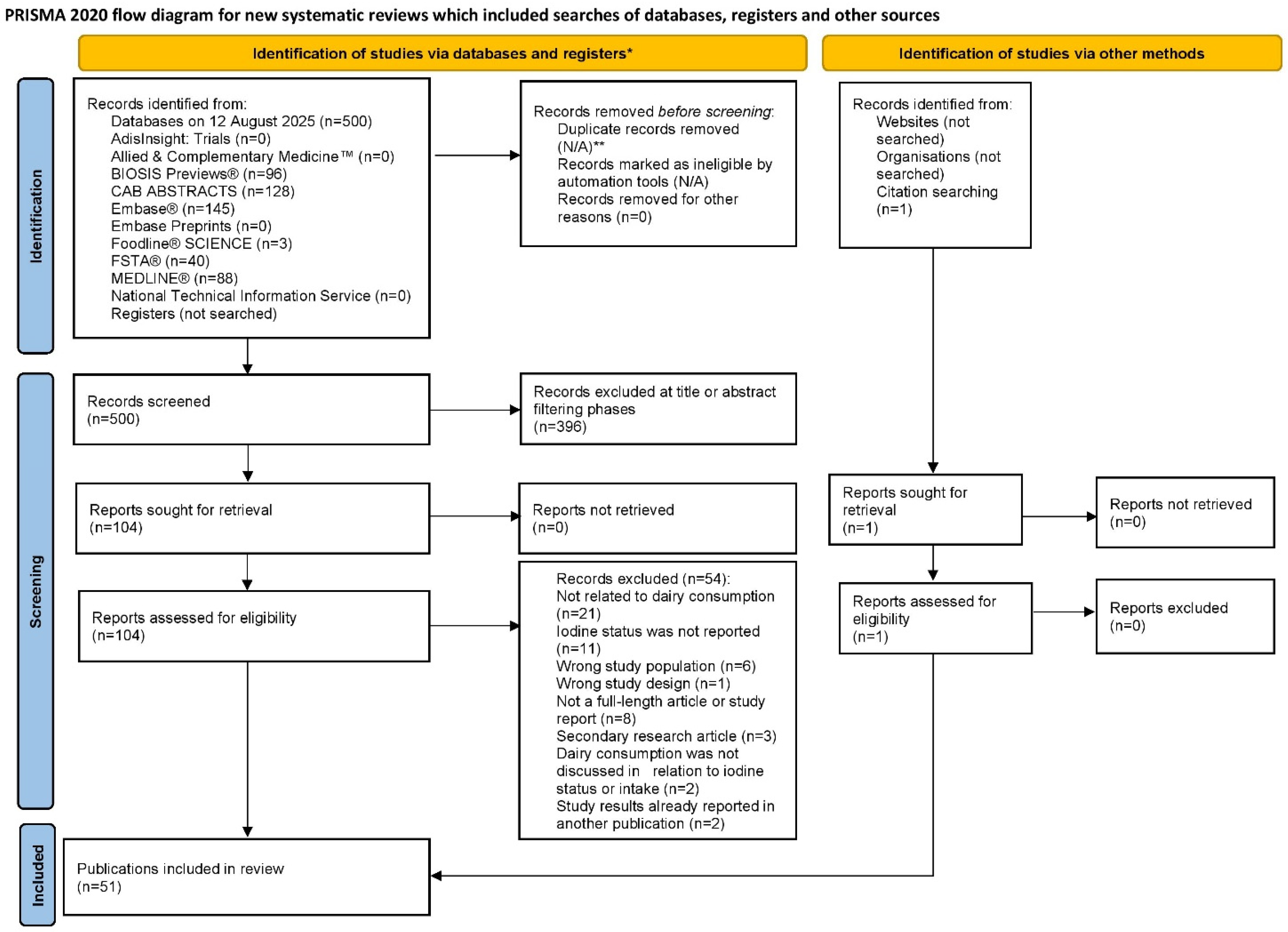Razmpoosh, E.; Geronimo, K.; Gauntlett, C.; Vicente, I.; Pham, P.; Shah, A.; Musa-Veloso, K. Dairy Intake and Iodine Status in Pregnant and Lactating Women: A Systematic Review and Meta-Analysis. Nutrients 2025, 17, 3765. https://doi.org/10.3390/nu17233765