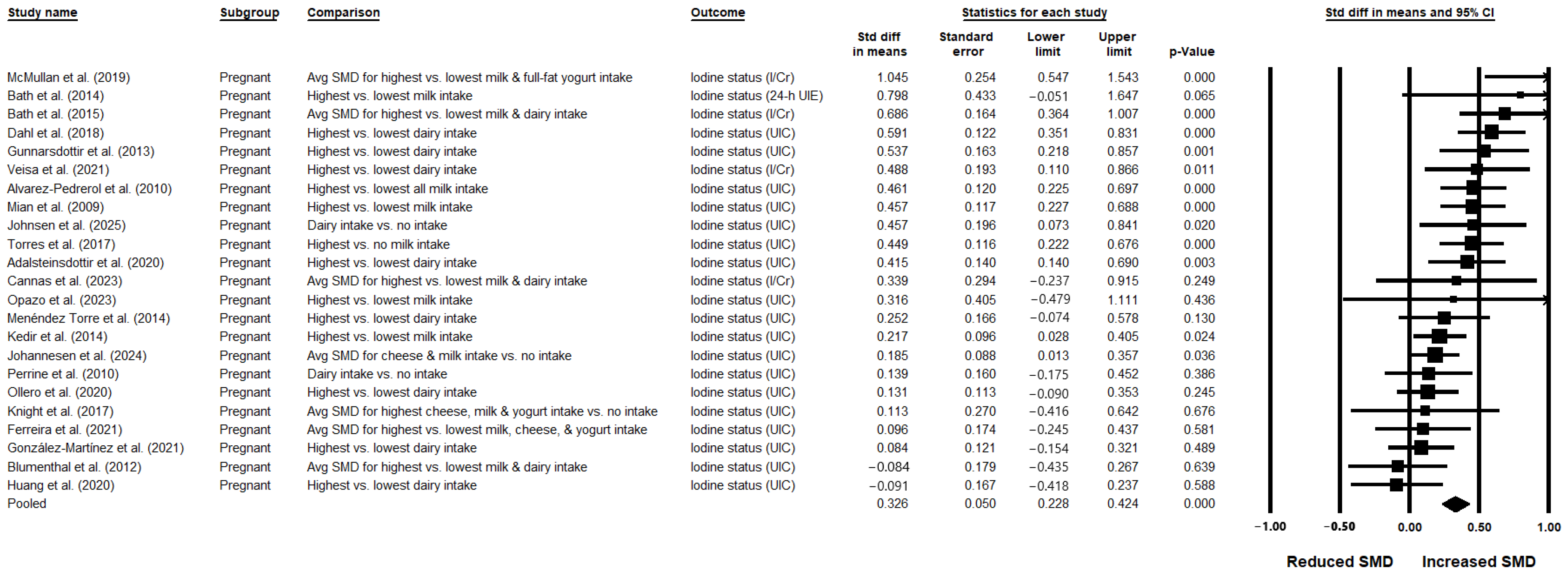Urinary Iodine Status Based on Dairy Intake (Standardized Mean Difference)