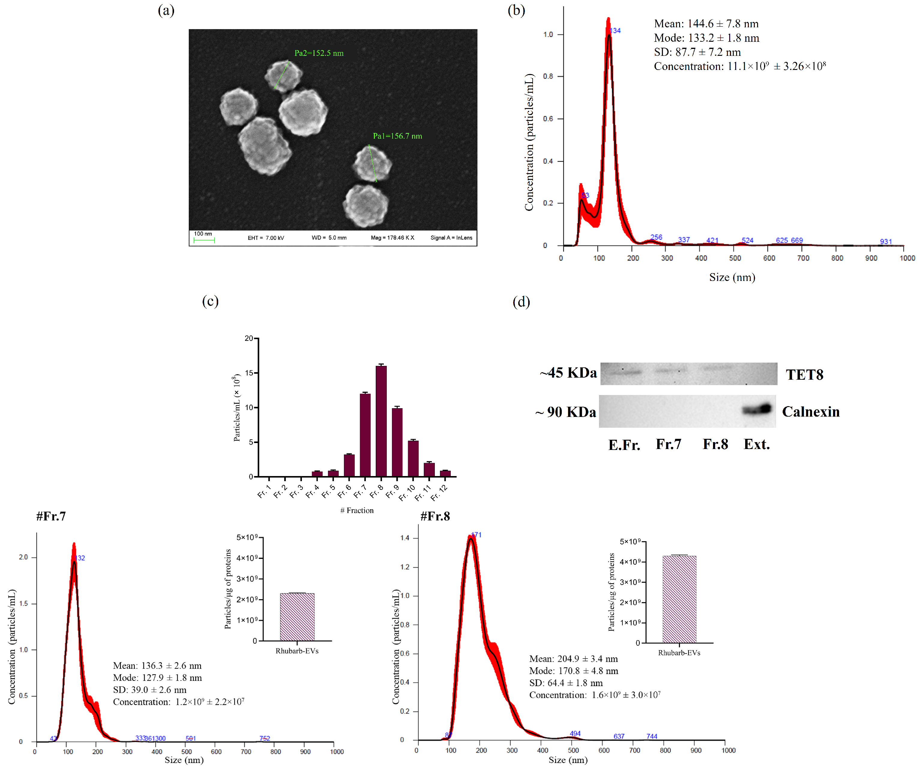 3.1. Rhubarb-Derived Extracellular Vesicle Characterization: NTA and SEM Analysis