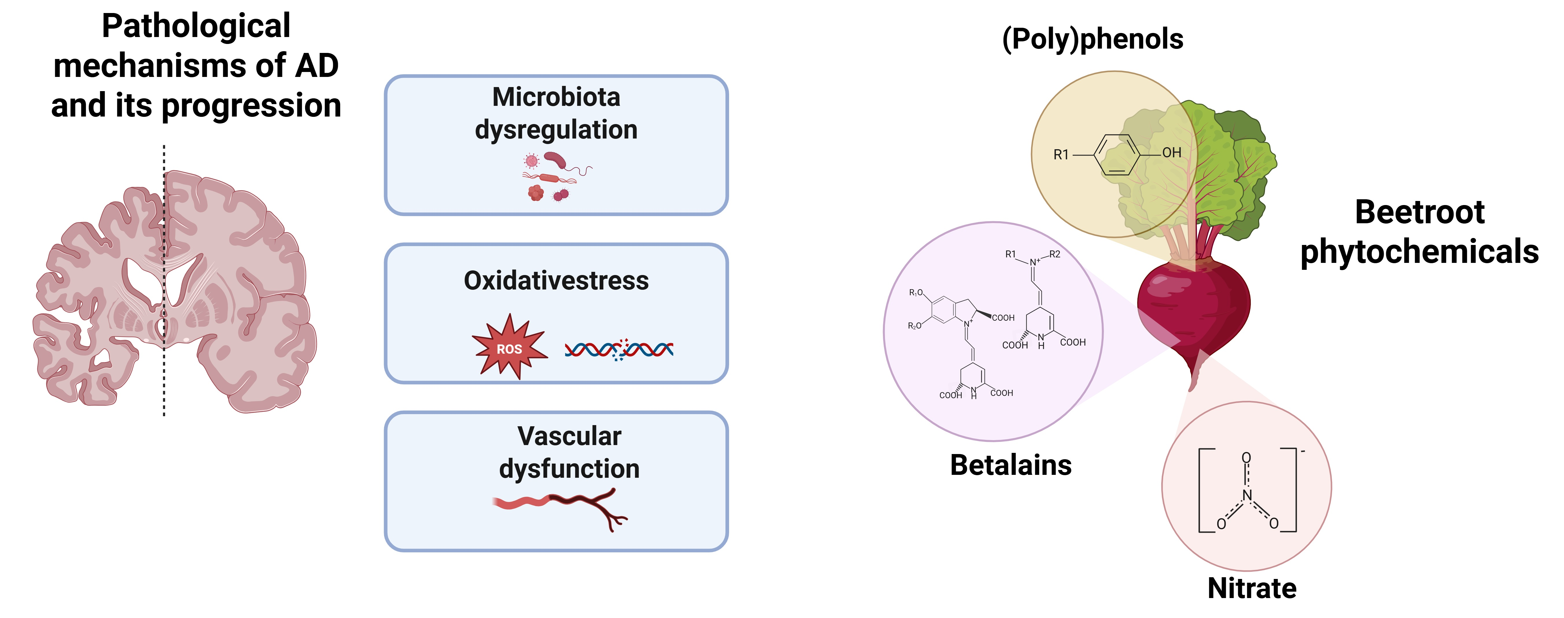 In humans, research is sparse. Few studies have examined how beetroot influences the oral or gut microbiome, and even fewer have linked these changes to cognitive outcomes or markers of neurodegeneration. Moreover, the abundance of nitrate-reducing oral bacteria in individuals with AD has not been characterised, yet these microbes may influence nitrate bioavailability and, in turn, the efficacy of any dietary interventions.