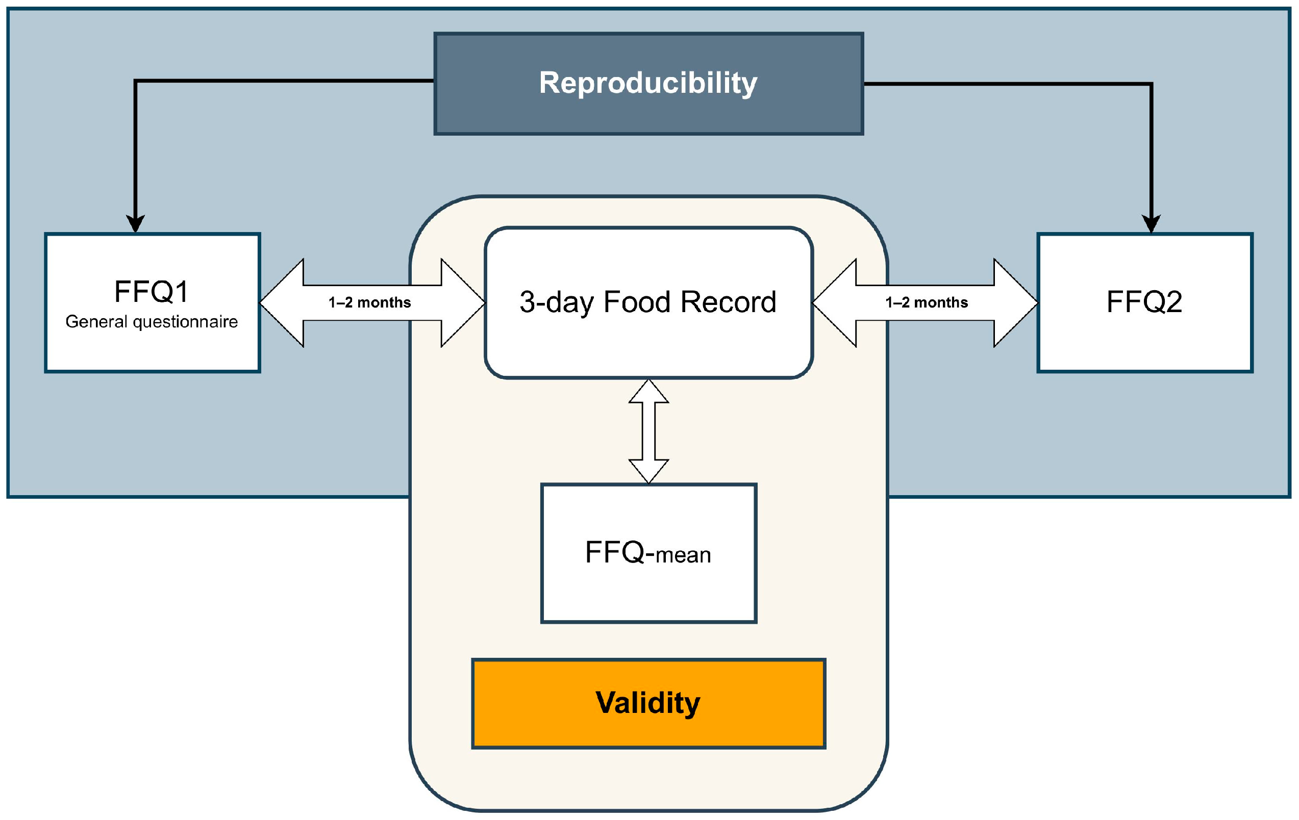 - Willett, W.; Lenart, E. Reproducibility and Validity of Food Frequency Questionnaires. In Nutritional Epidemiology; Willett, W., Ed.; Oxford University Press: Oxford, UK, 2012. [Google Scholar] [CrossRef]