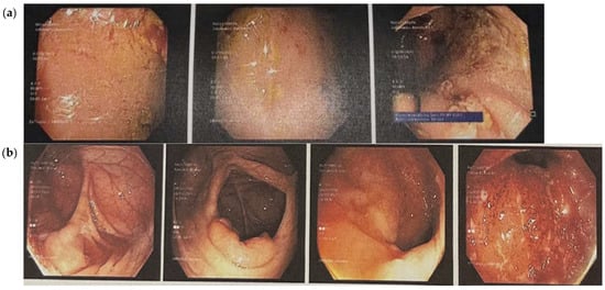 In this patient’s case, the combination of strict dietary recommendations and adequate hydration by drinking at least 2 L of water per day (which the man did not follow) and pharmacological treatment resulted in a spectacular reduction in colon inflammation to such an extent that the attending physician decided to perform a repeat colonoscopy, which indicated clinical remission confirmed by the normalization of other parameters, including the elimination of clinical symptoms and a significant reduction in FC and CRP. The activity of liver transaminases in the blood serum of both patients was not elevated either before or after 28 days of intervention, indicating no liver damage that could be the result of, for example, the medications used. The first-line drug mesalazine, which is considered safe based on current knowledge [47], shows low hepatotoxicity due to minimal absorption and mostly excretion in the feces [48].