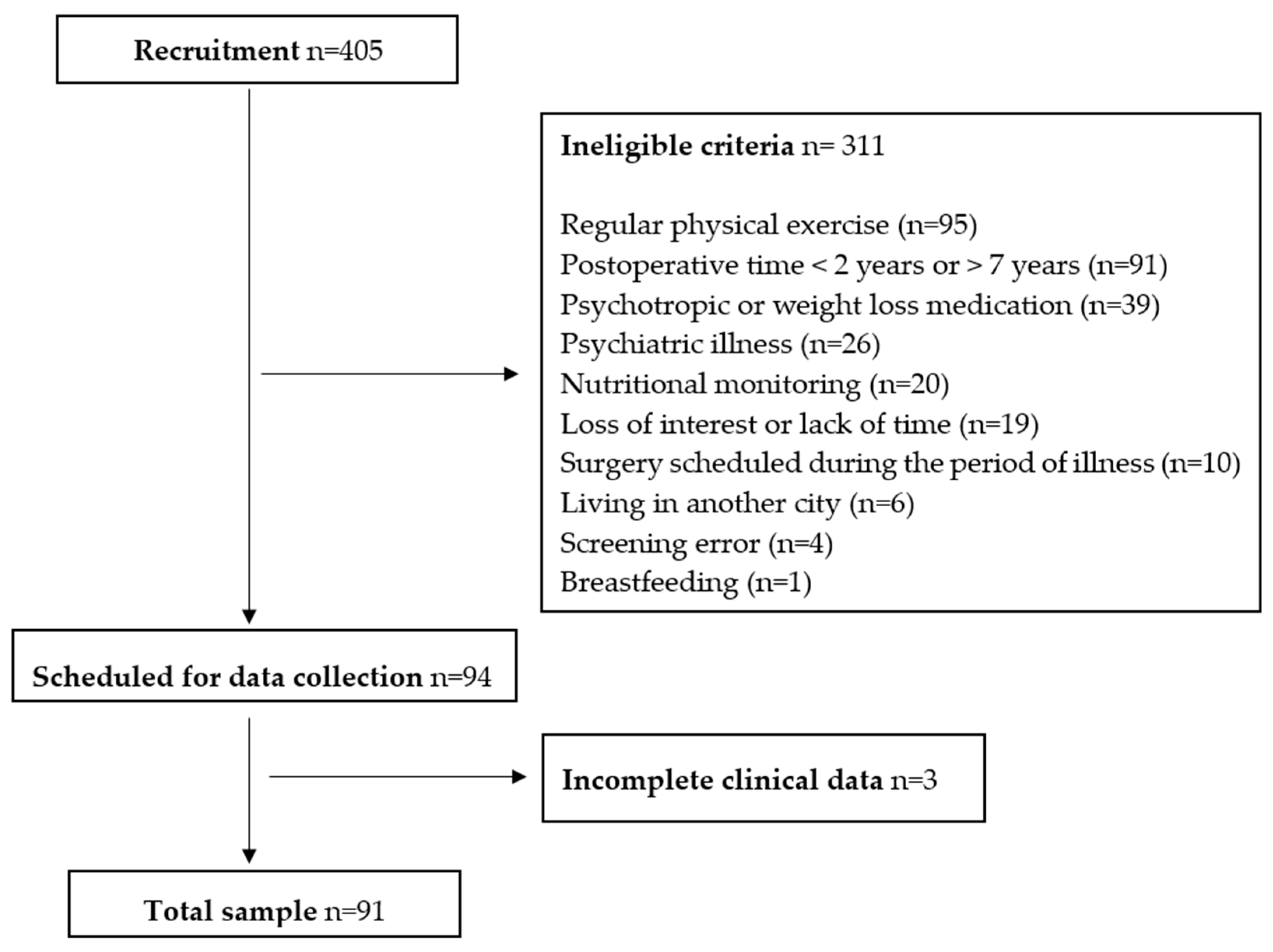 - El Ansari, W.; Elhag, W. Weight Regain and Insufficient Weight Loss After Bariatric Surgery: Definitions, Prevalence, Mechanisms, Predictors, Prevention and Management Strategies, and Knowledge Gaps—A Scoping Review. Obes. Surg. 2021, 31, 1755–1766. [Google Scholar] [CrossRef] [PubMed]