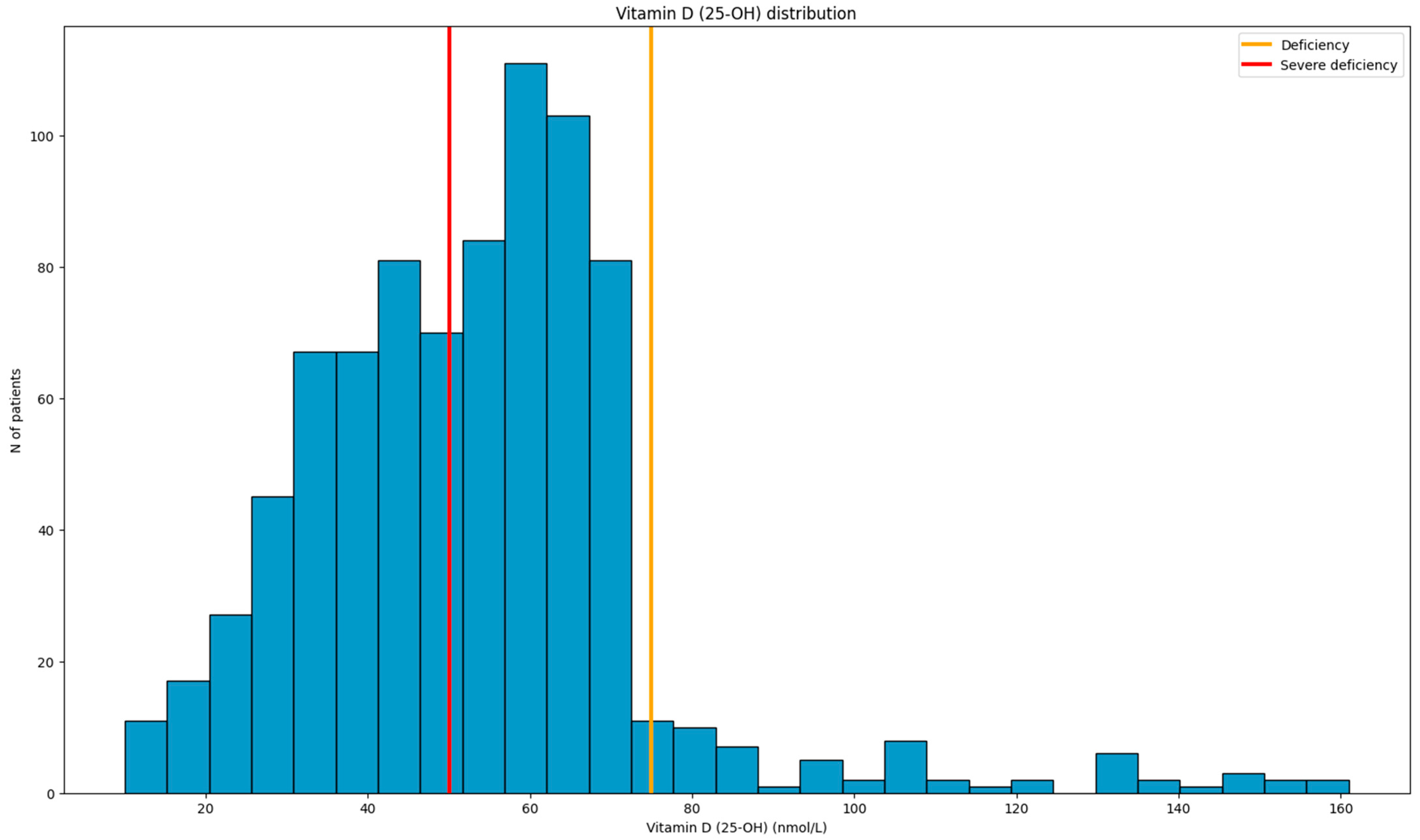 - Sobczyńska-Malefora, A.; Sulkowski, A.; Harbige, L.; Steed, D.; Harrington, D.J. Vitamin D Status in a Large, Ethnically Diverse Patient Population Living in South East London at the Onset of the COVID-19 Pandemic: A Cross-Sectional Study Including a SARS-CoV-2 Positive Patient Subset. Nutrients 2025, 17, 2861. [Google Scholar] [CrossRef]