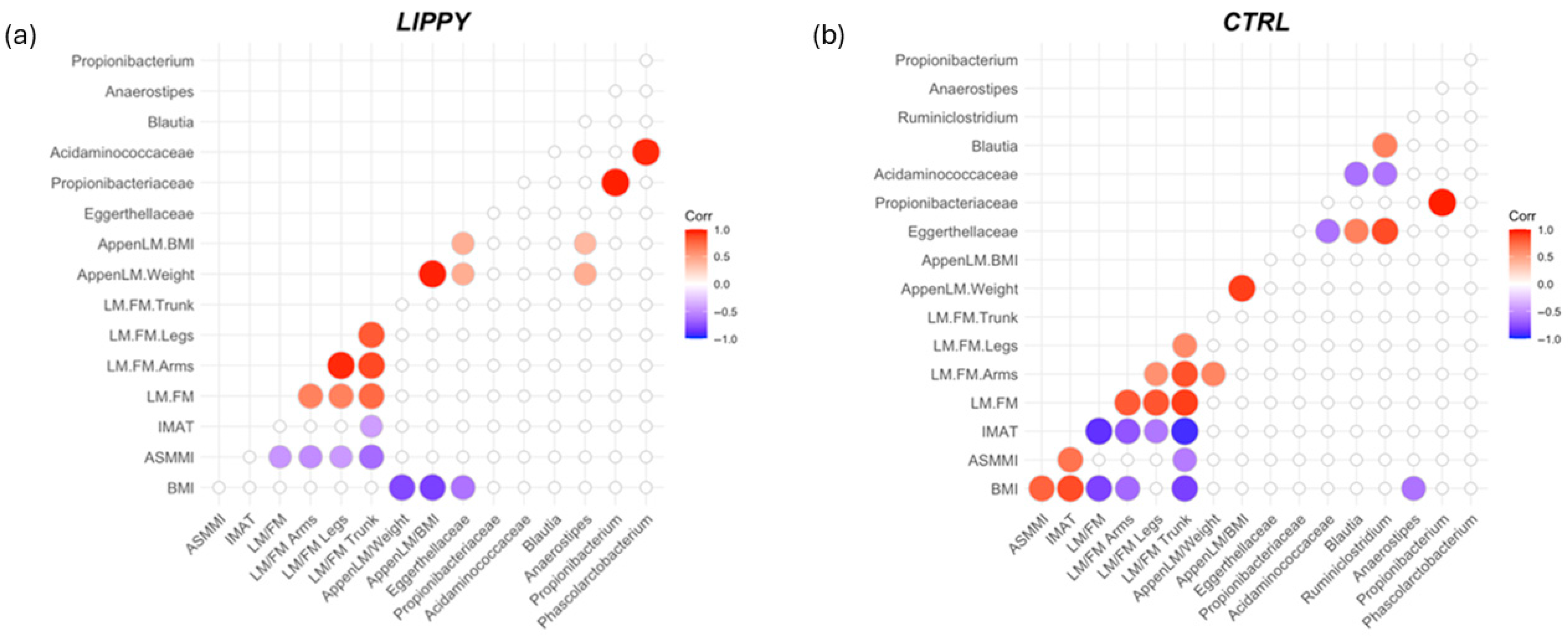 3.4. Correlations Between Microbiota and Body Composition