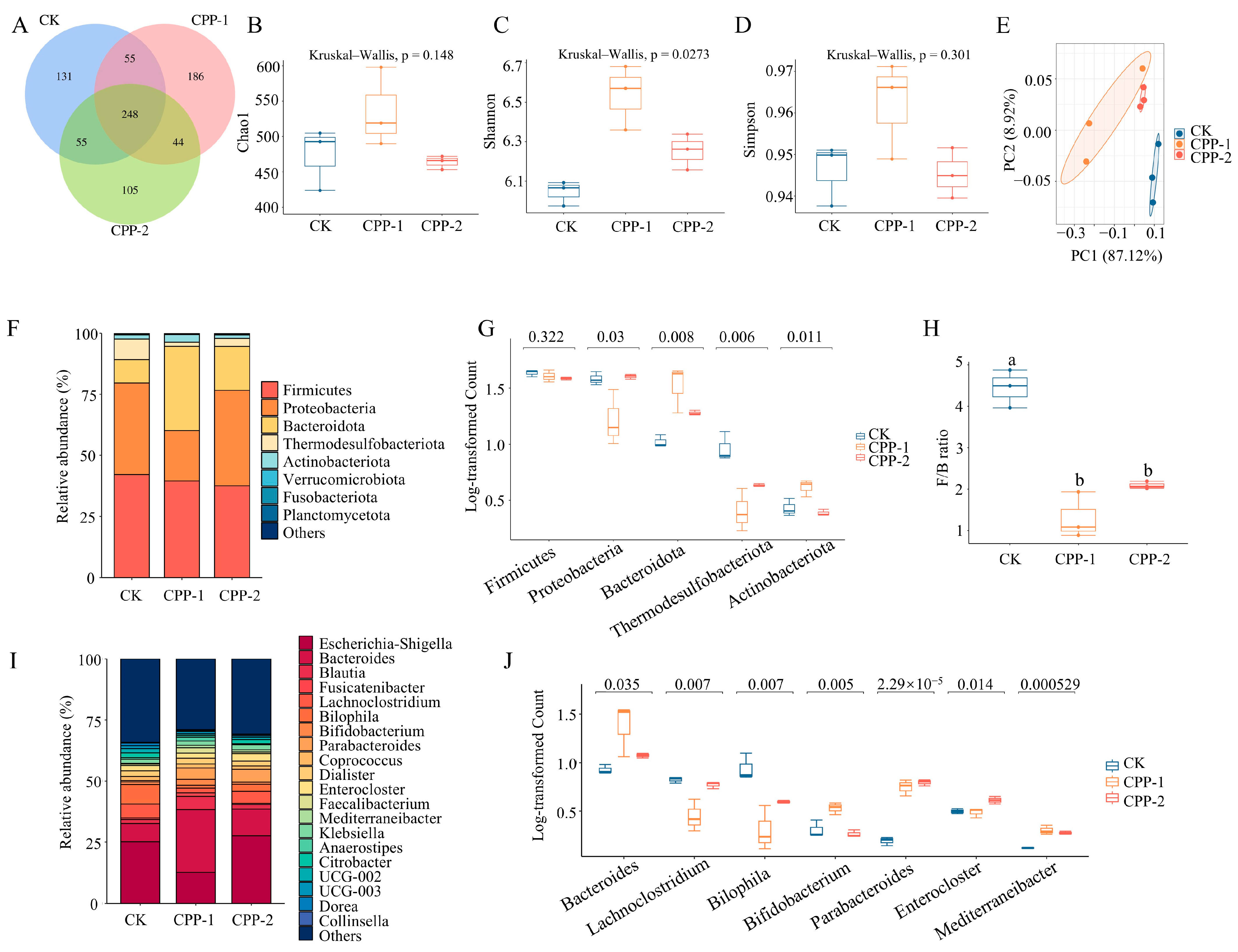 3.4. Effects of CPP-1 and CPP-2 on Gut Microbiota