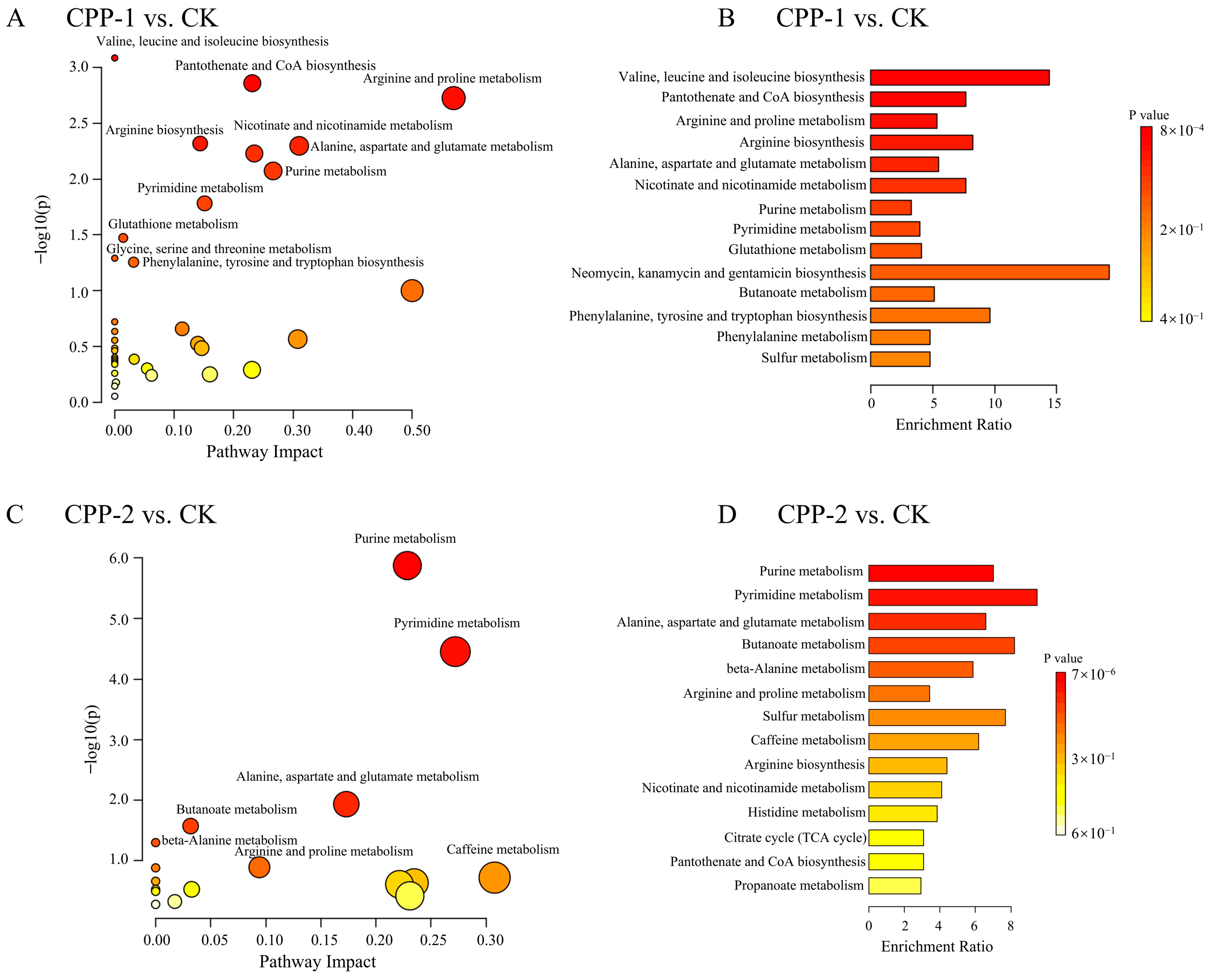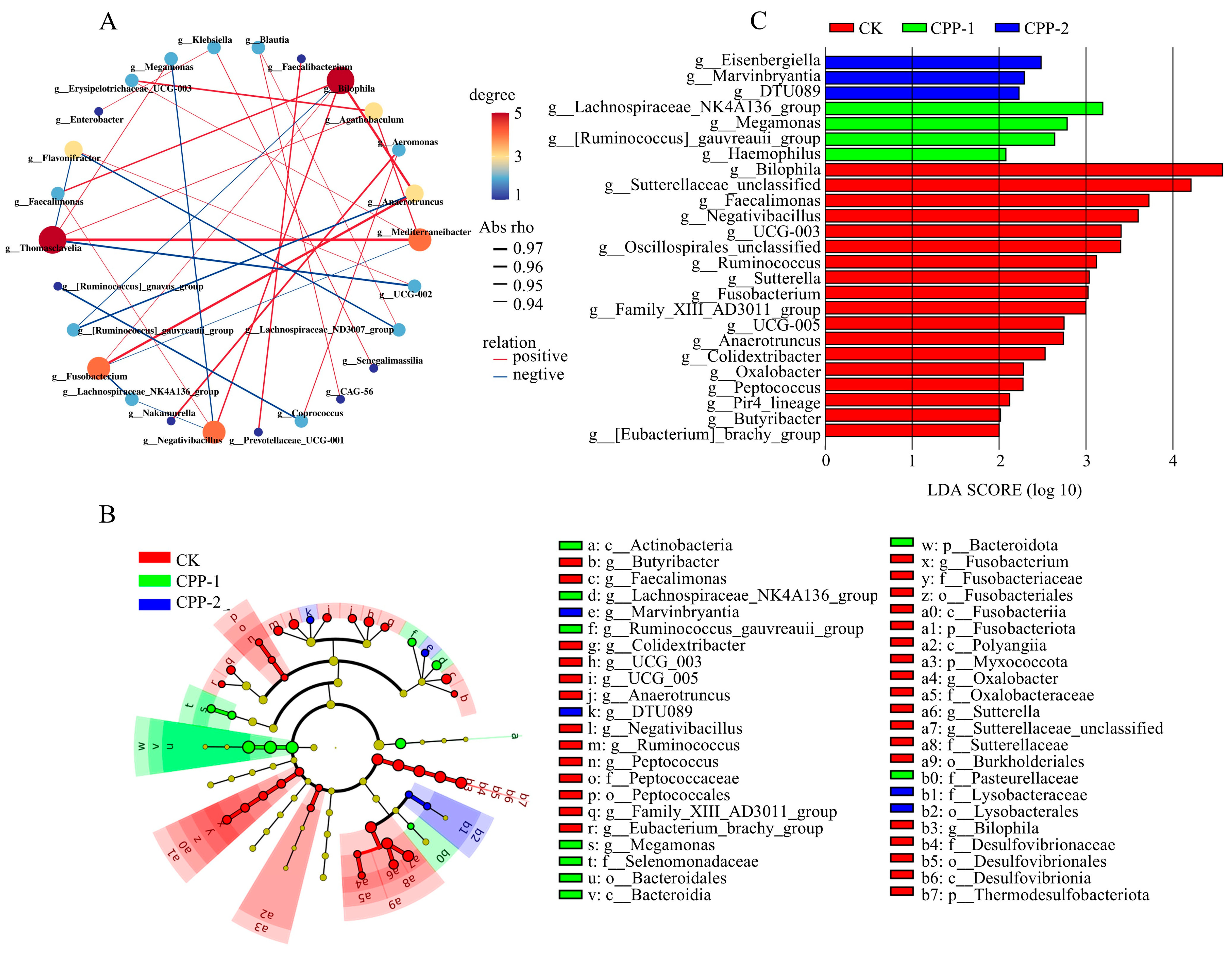 3.6. Effects of CPP-1 and CPP-2 on Microbial Metabolites