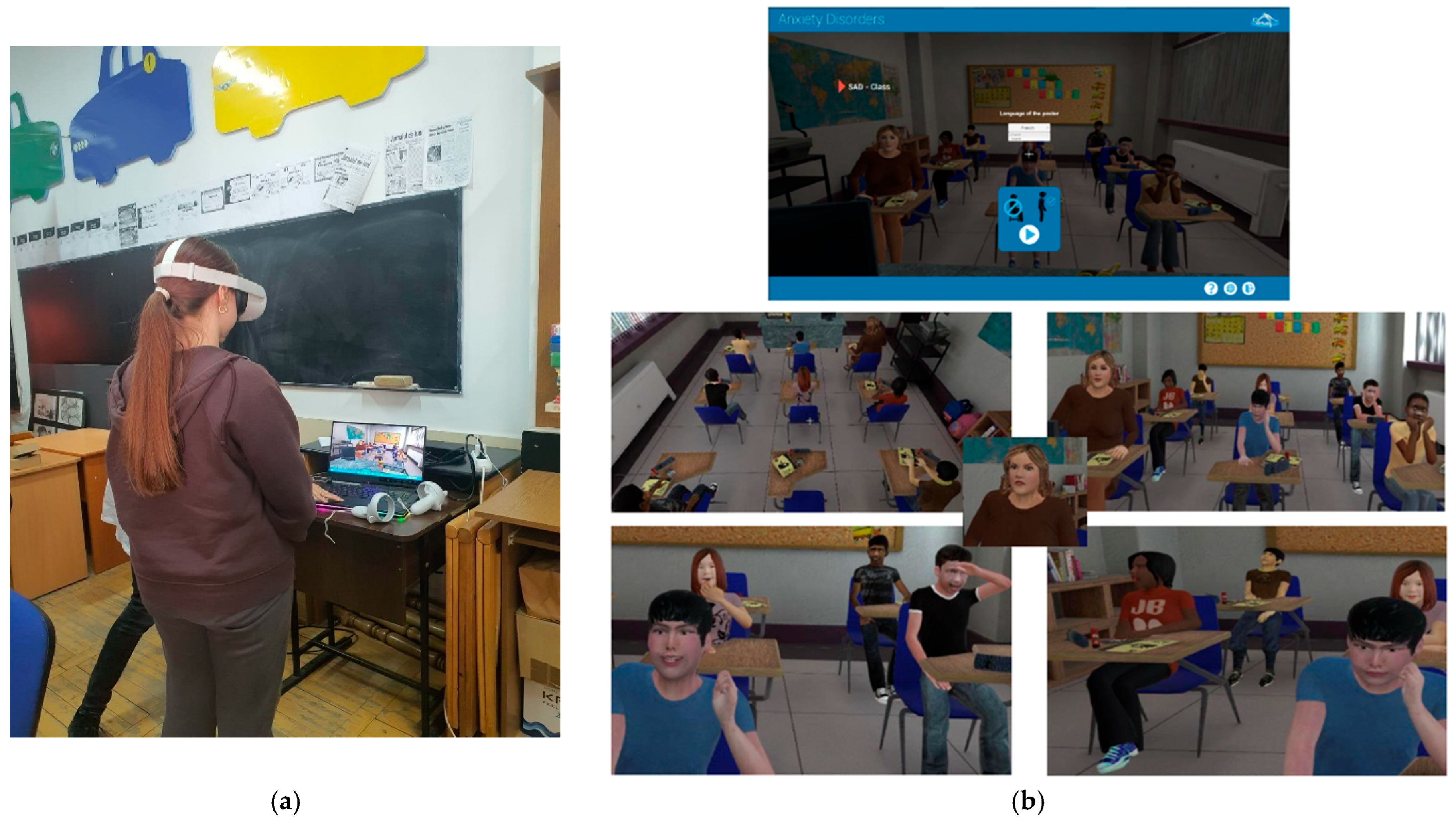 - Moïse-Richard, A.; Ménard, L.; Bouchard, S.; Leclercq, A.-L. Real and virtual classrooms can trigger the same levels of stuttering severity ratings and anxiety in school-age children and adolescents who stutter. J. Fluency Disord. 2021, 68, 105830. [Google Scholar] [CrossRef]