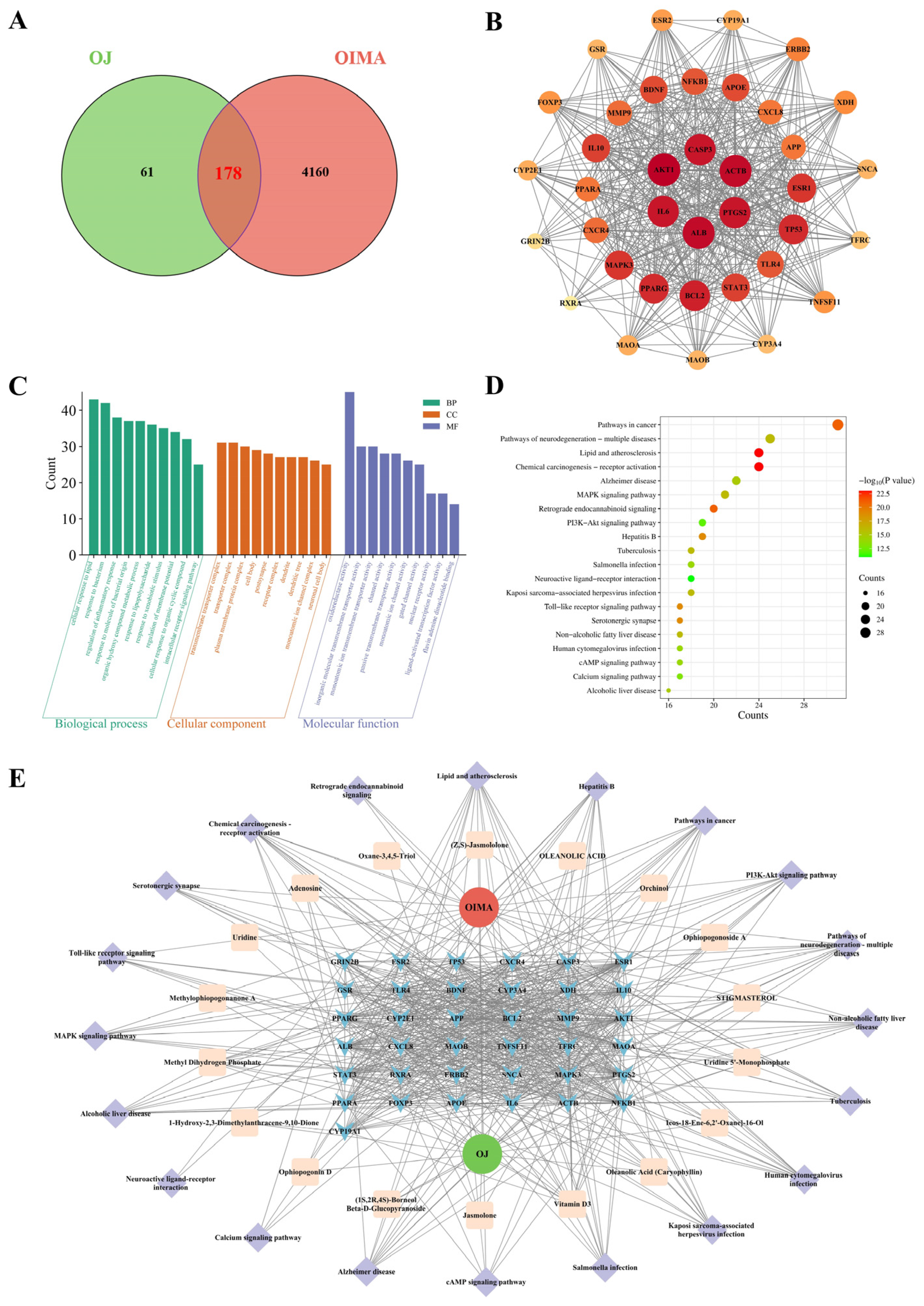 3.8. Network Pharmacological Analysis