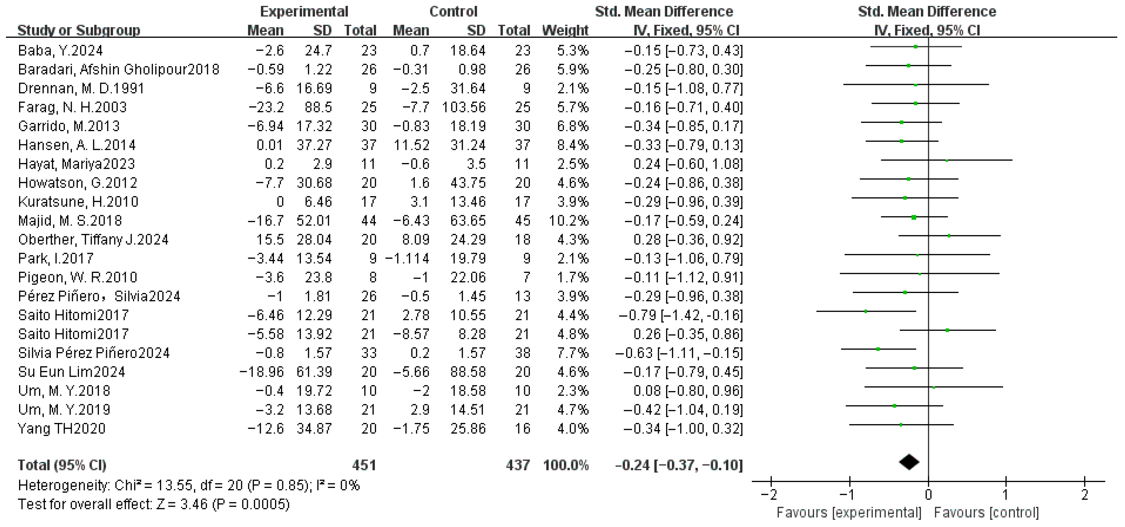 | Intervention time | −0.385 | 0.010 | −0.664 | −0.106 |