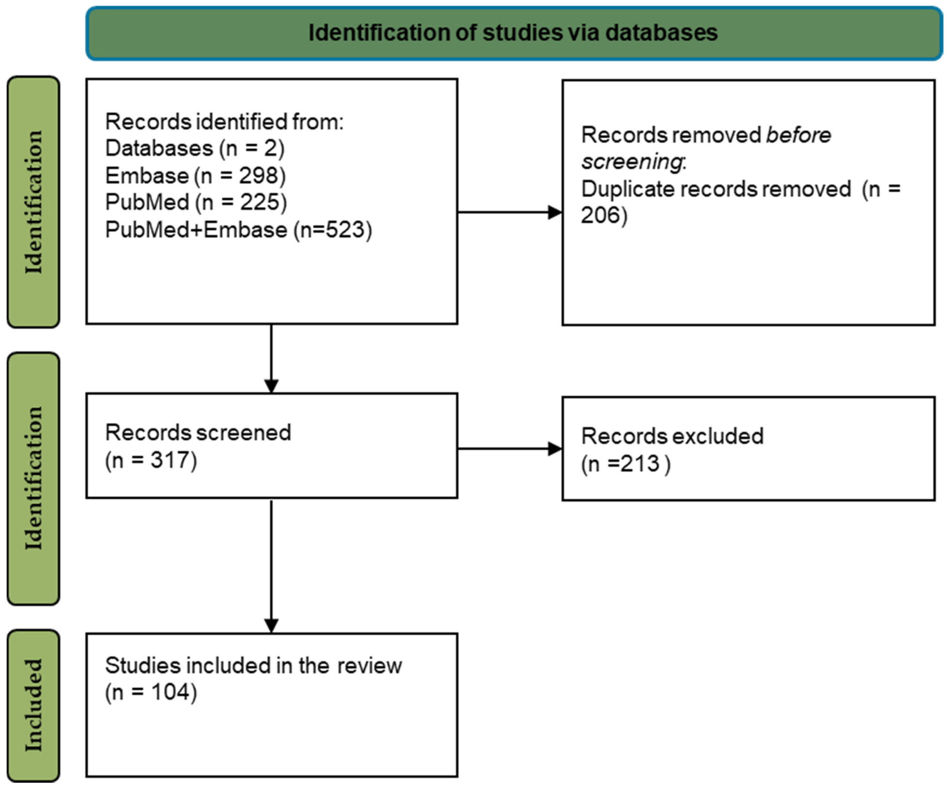 | ‘beetroot*’:ti,ab,kw,de,dn,df,mn,tn OR ‘beet’/exp OR ‘beet’ OR ‘beta vulgaris’:ti,ab,kw,de,dn,df,mn,tn) AND (‘physical activit*’:ti,ab,kw OR ‘sport*’:ti,ab,kw OR ‘athletic performance’/exp OR ‘athletic performance’ OR ‘athletic performance*’:ti,ab,kw OR ‘exercise*’:ti,ab,kw OR ‘aerobic’:ti,ab,kw,de,dn,df,mn,tn OR ‘gymnastic*’:ti,ab,kw,de,dn,df,mn,tn OR ‘training’:ti,ab,kw,de,dn,df,mn,tn) NOT ((‘animal’/exp OR ‘animal’) NOT (‘human’/exp OR ‘human’)) |