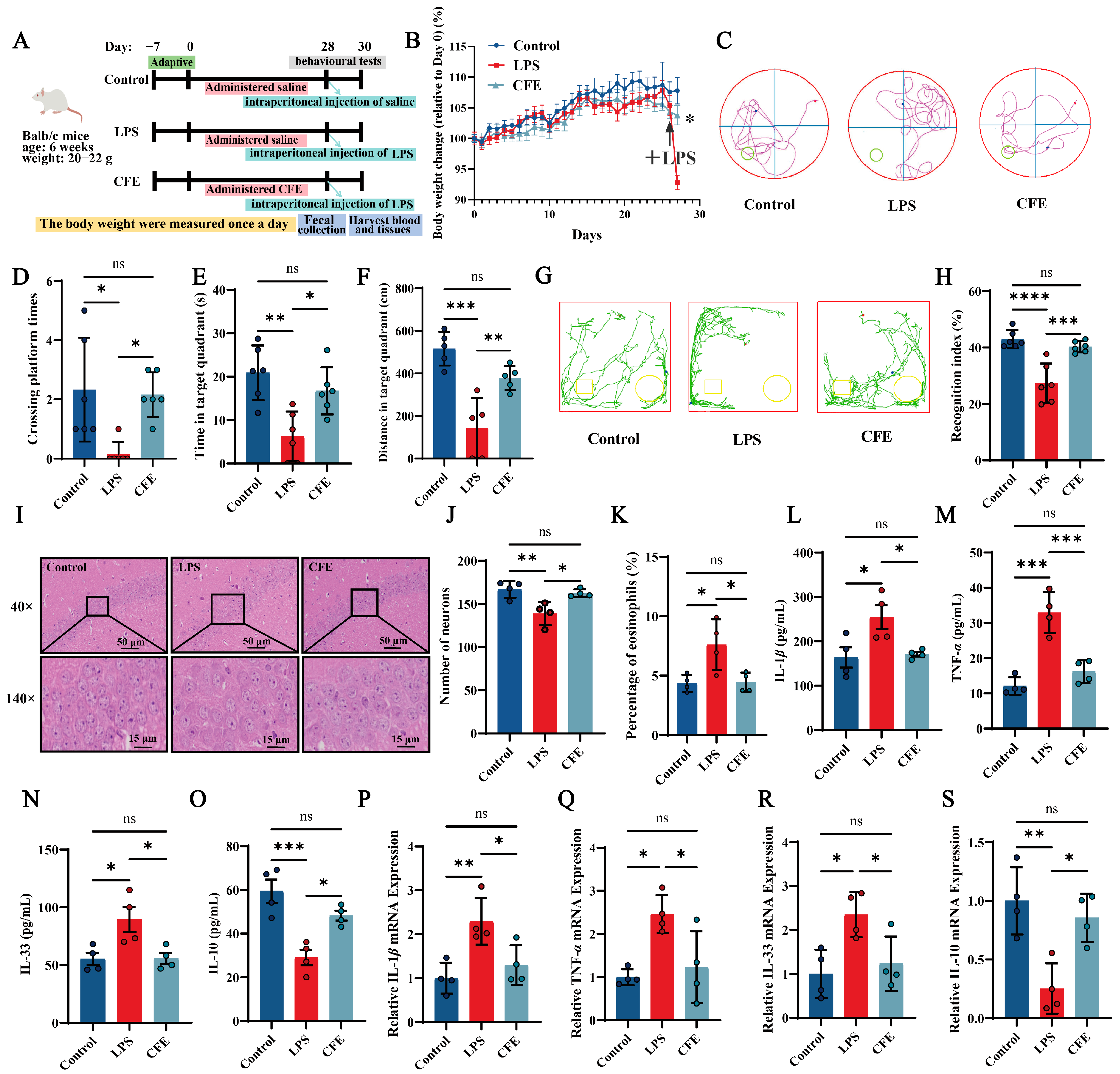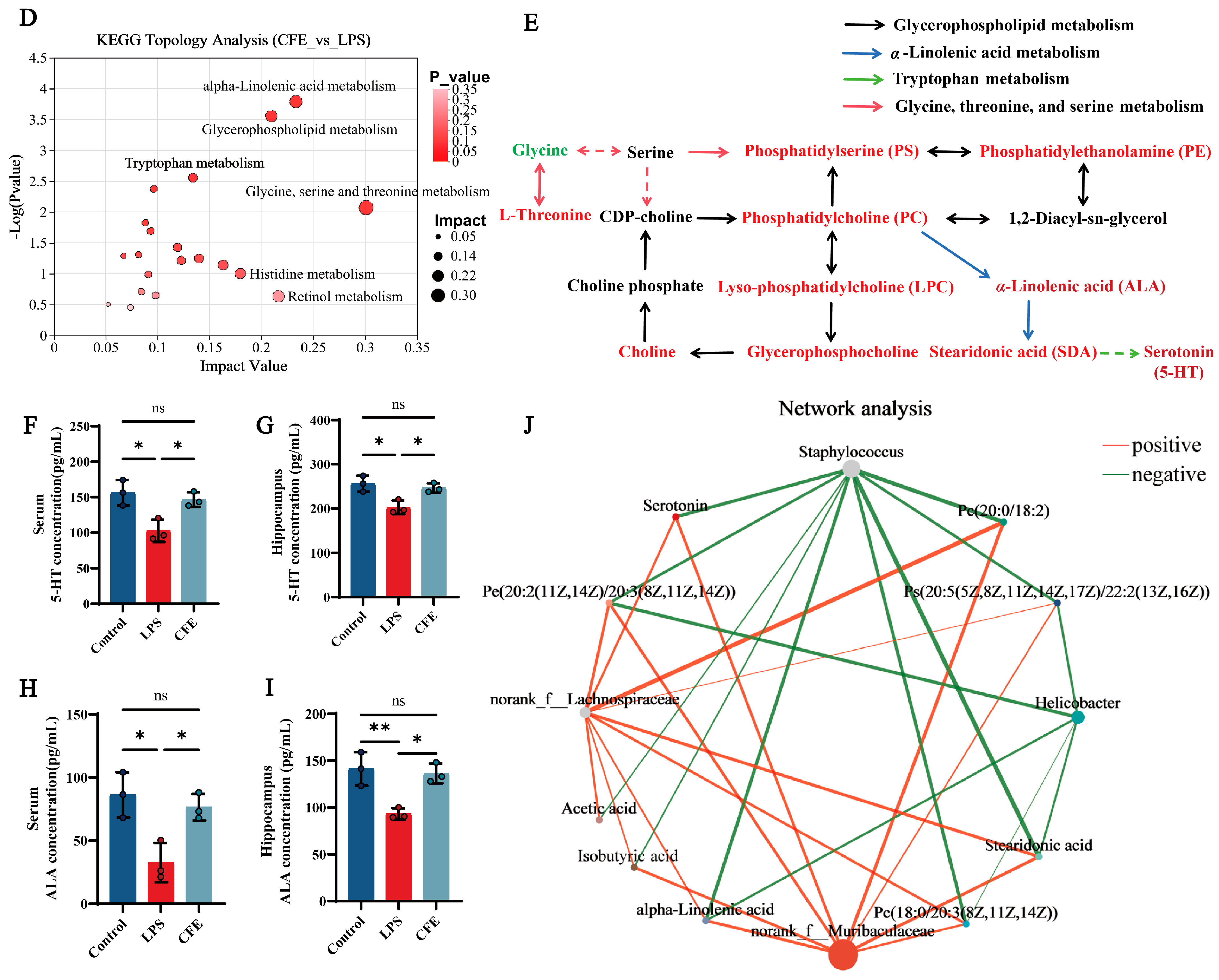 3.5. CFE Modulated Inflammatory Cytokine Levels in Serum and Hippocampus of HNF Mice