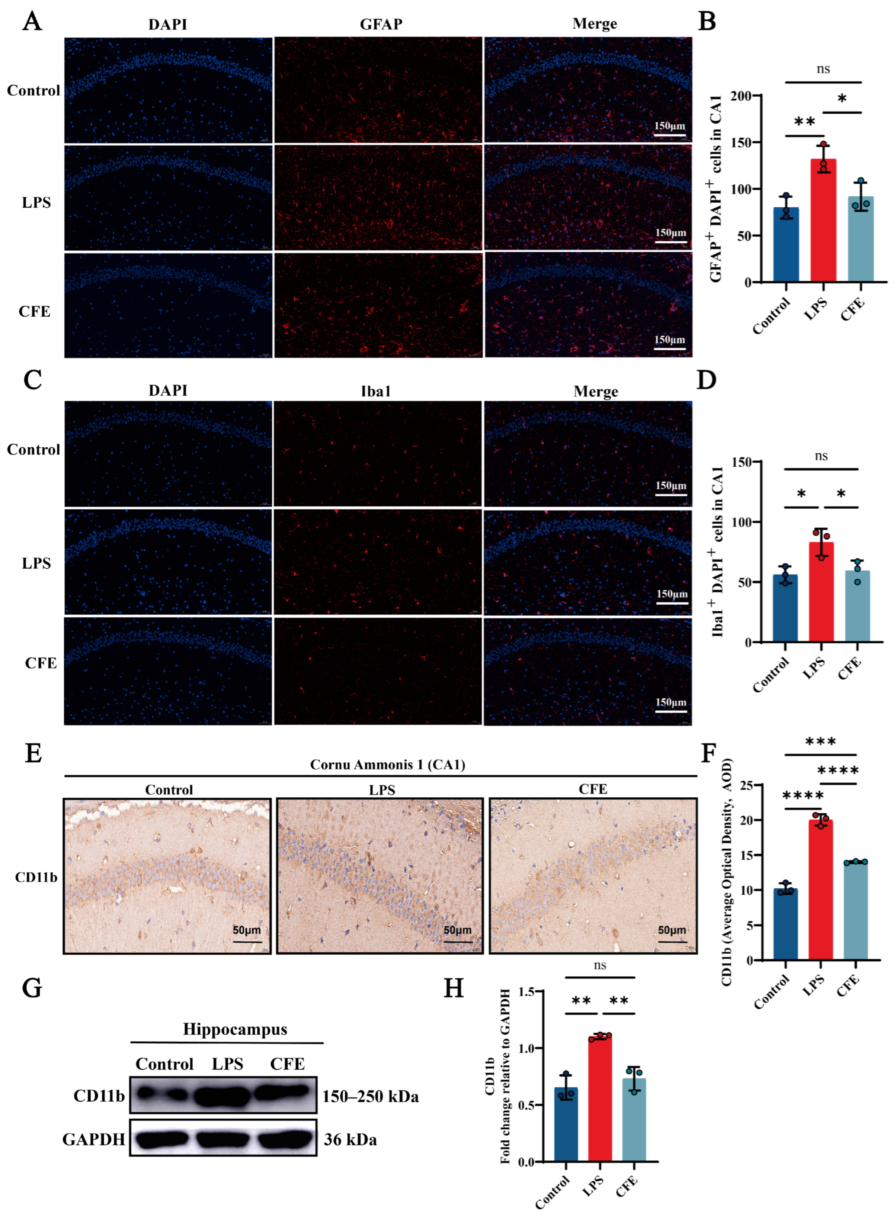 3.4. CFE Alleviated Hippocampal Damage in HNF Mice