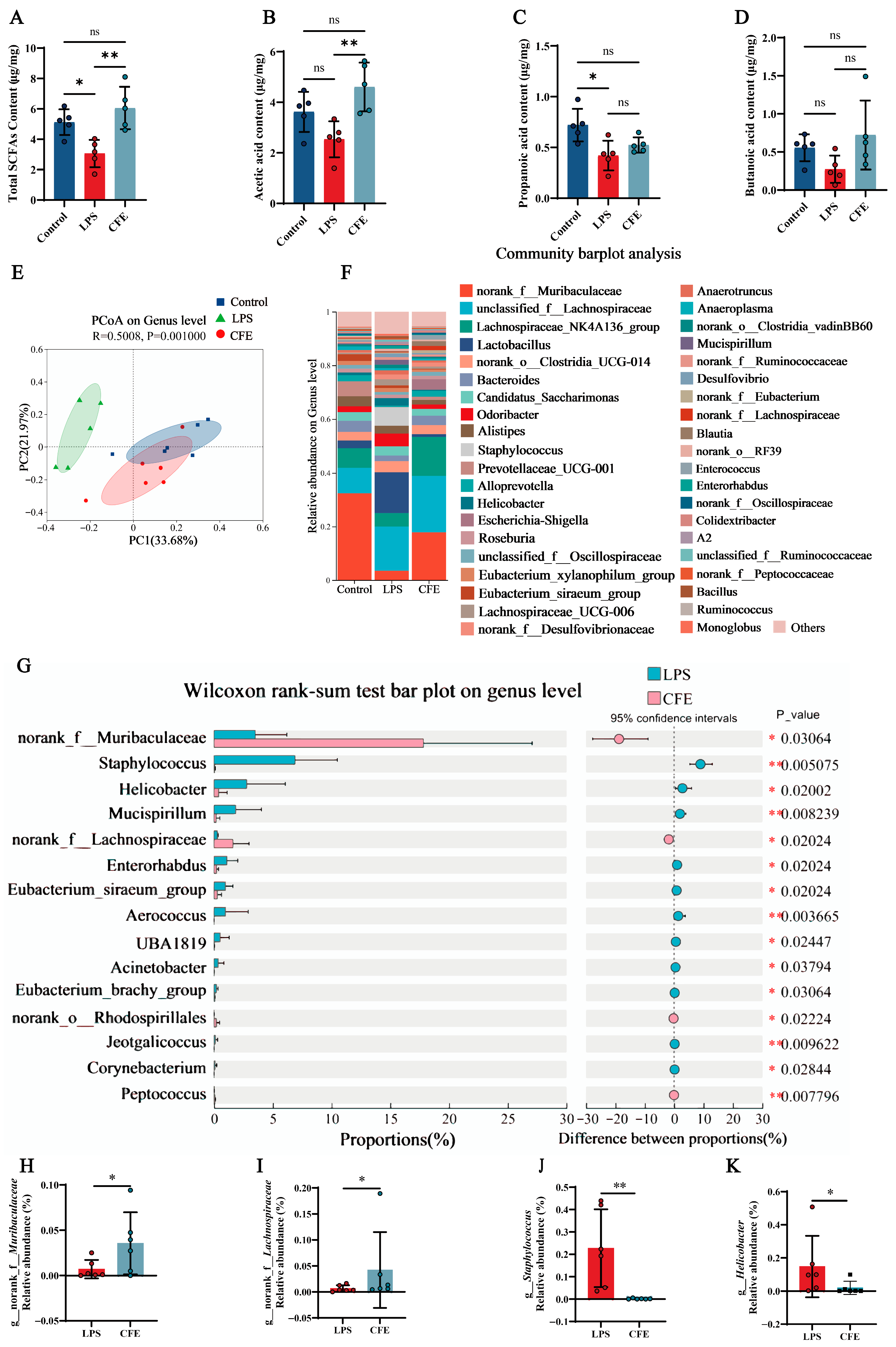 3.11. CFE Reshaped the Gut Microbiota of HNF Mice