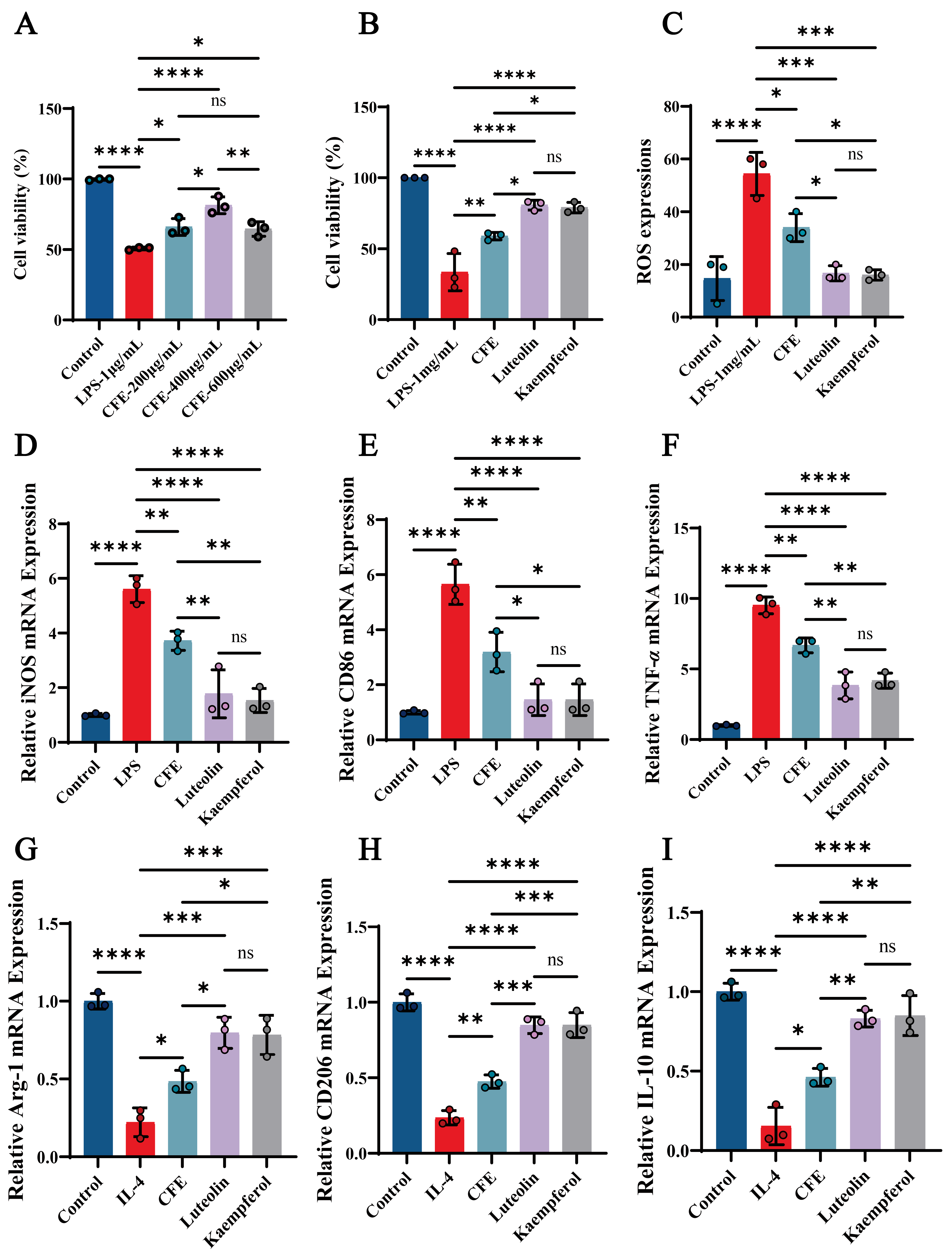 3.14. CFE, Luteolin and Kaempferol Suppressed M1 Polarization and Promoted M2 Polarization in BV2 Microglial Cells