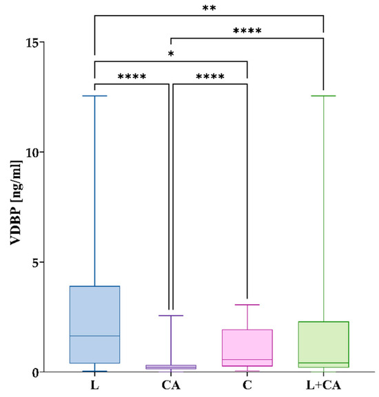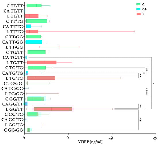 3.3.2. VDBP Concentrations in Haplotypes Among the Studied Groups