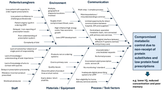 A frequent issue identified by dietitians was the interruptions to LPPF supply and manufacturing issues. Manufacturers of LPPF have significant challenges. They require alternative and suitable low-protein grains/starches requiring complex manufacturing processes. Since 2011, the UK NSPKU have identified that 43 LPPFs have been withdrawn by manufacturers and thereby from prescription [23]. Manufacturers may have fragile supply chain challenges, increasing energy costs, costs associated with inflation, delays in accessing key ingredients and raw materials, batch production failures, global supply chain challenges, and labour shortages. Goods imported may take longer to arrive in the country, and the introduction of full customs controls in the European Union has created additional administration. LPPF manufacturers supplying a range of products may have to use third-party suppliers who consider that it is not cost effective to produce goods in the small volumes required by patients with rare disorders such as PKU. Furthermore, outsourcing production means reliance on external partners to maintain the quality of LPPF.