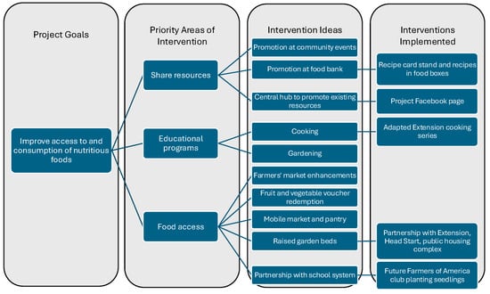 Laurel County residents identified nutrition and obesity as top concerns, with the Laurel County Health in Motion Coalition identifying obesity as the #2 health priority behind substance use [36]. The Coalition identified multiple assets upon which healthy eating strategies might be implemented or replicated, including a farmers’ market and Extension programs. Notably, the top action steps recommended by the Coalition to reduce obesity were as follows: (1) encourage and provide social support interventions; (2) provide educational programs and presentations to school-age population on healthy nutrition; and (3) increase participation in programs providing healthy foods [36]. The community’s priority for improving food security and nutritional health outcomes provided a foundation for partnership between the community and university.