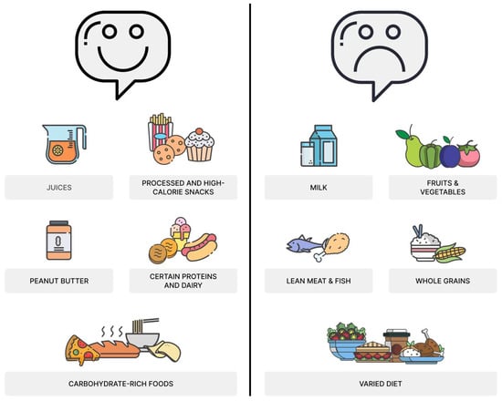 Intolerable food consumption often leads to refusal behaviors such as crying, pushing away the feeder or spoon, turning the head, blocking the mouth, and, in some instances, more severe reactions like fleeing from the table, aggression, or self-harm [42].