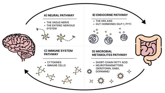 The gut–brain axis is a bidirectional communication network linking the central nervous system (CNS) with the enteric nervous system (ENS). It plays a crucial role in maintaining homeostasis and influences many processes, including behavior, mood, and cognition [87].