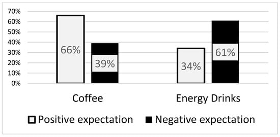 Dichotomized positive vs. negative expectations associated with coffee and energy drinks.