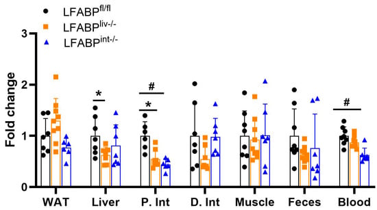 It has been recognized that a subset of the obese population is nevertheless healthy, not displaying various comorbidities that are commonplace amongst obese people; this phenomenon has become known as the “metabolically healthy but obese” (MHO) state [27,28,29,30]. The LFABP-/- mice, thus, appear to be a model of MHO. To understand the underlying causes of the LFABP-/- phenotype, it is critical to know whether it is dependent on the ablation of LFABP in the liver, the intestine, or both the liver and the intestine.
