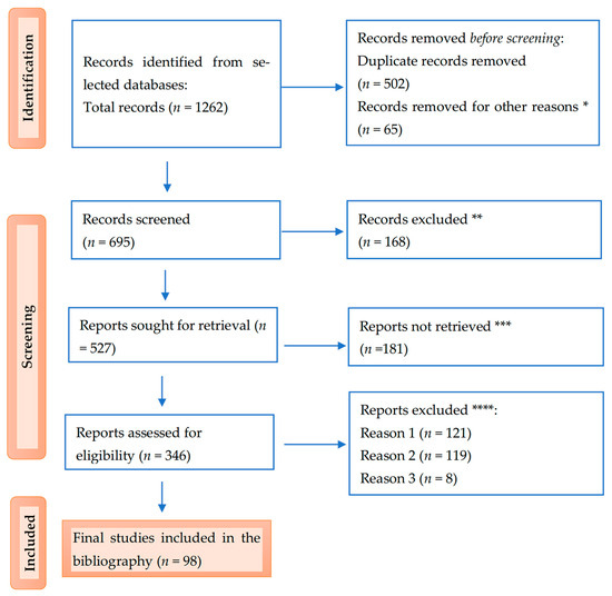 PRISMA flow diagram for the results: * studies are not relevant for the present review; ** studies do not help us provide an answer to the research question; *** unable to find the full text of the study; and **** Reason 1—wrong setting, Reason 2—wrong patient population, and Reason 3—research question not relevant.
