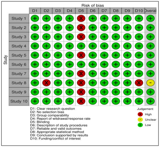Quality appraisal for selected studies [22,23,24,25,26,27,28,29,30,31].