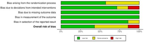 For the risk-of-bias assessment, we used RoB 2, following the guidelines of the Cochrane Handbook, since all included studies were randomized trials [28]. Due to the high heterogeneity of the results, we opted for a narrative synthesis, and a meta-analysis was not conducted.