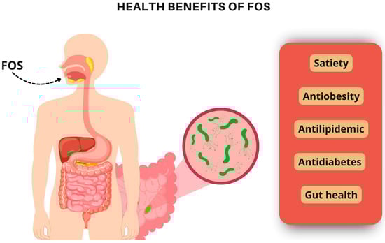 The yacon syrup’s ability to favorably promote the growth of gut microbiota results in better gastrointestinal function. These effects are likely due to the FOS content, as FOSs promoted a significant increase in Bifidobacterium while maintaining the constant growth of Bacteroides/Prevotella in human fecal cultures after 5 h of fermentation [47]. Therefore, these results reinforce the prebiotic effects of yacon syrup and FOSs in improving gastrointestinal function. The prebiotic effects of FOSs help to explain the positive impact of yacon syrup on intestinal health. The consumption of 20 g/day of yacon syrup, equivalent to 6.4 g of FOSs, for two weeks reduced colonic transit time from 59.7 to 38.4 h [22]. The long-term study (120 days) shows that the daily supplementation with yacon syrup (0.14 g of FOSs/kg of body weight/day) significantly increased bowel movement frequency in obese women with a history of constipation. Furthermore, the study demonstrated that regular consumption of yacon syrup promotes the growth of beneficial bacteria in the gut microbiota, leading to improvements in gastrointestinal function [21].