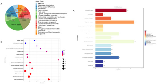 (A) Wayne diagram; (B) KEGG pathway analysis; (C) bubble map.
