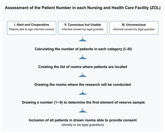 The study population included adults residing in LTCFs (ZOL) who required long-term care due to chronic conditions, regardless of age. The method of selecting patients is shown in Figure 2.