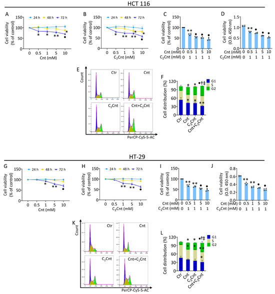 3.1. Effect of Cnt and C2Cnt on CRC Viability and Cell Cycle Progression