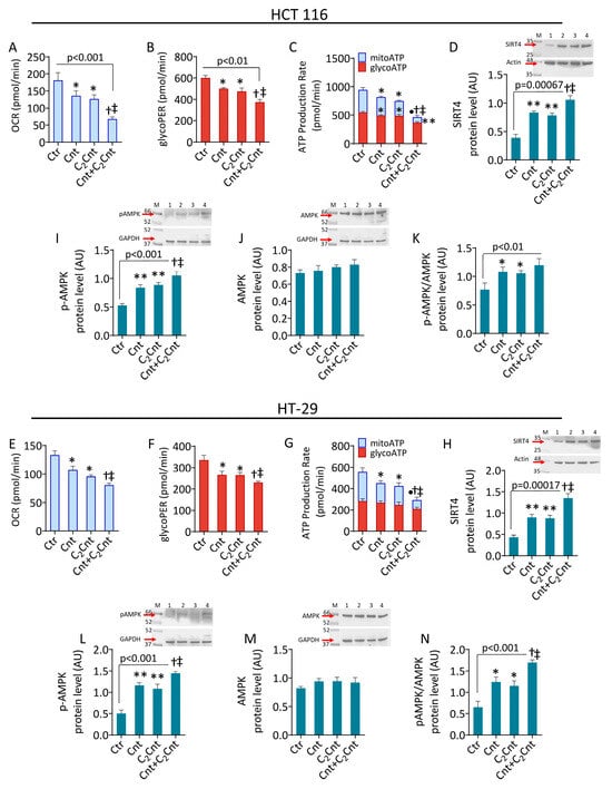3.2. Cnt and C2Cnt Impaired the Bioenergetics of CRC Cells and Upregulated SIRT4 and AMPK