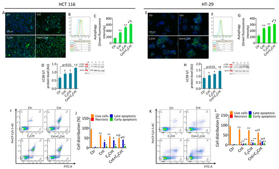 3.4. Cnt and C2Cnt Induced Autophagy and Apoptotic Death of CRC Cells