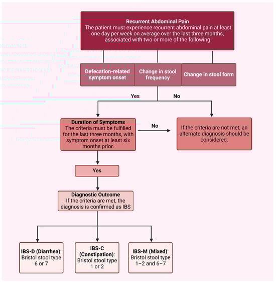 IBS diagnostic criteria. Created with BioRender.com (accessed on 5 March 2025).