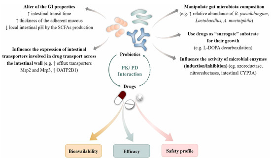 - Purdel, C.; Ungurianu, A.; Adam-Dima, I.; Margină, D. Exploring the Potential Impact of Probiotic Use on Drug Metabolism and Efficacy. Biomed. Pharmacother. 2023, 161, 114468. [Google Scholar] [CrossRef]