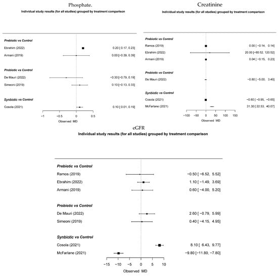 Additional variables for which data were collected included participant characteristics (e.g., age, gender, CKD stage), intervention specifics (e.g., type, dose, duration of prebiotics, probiotics, or synbiotics), and funding sources. Assumptions regarding missing or unclear information were made based on the context provided in the studies, and attempts were made to contact study authors for clarification when necessary.