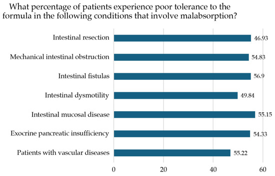 Percentage of patients with poor tolerance of the nutritional formula according to the malabsorption condition.
