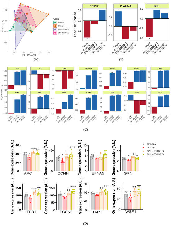 3.5. GEG Administration Modulated the Expression of Neuropathology Genes