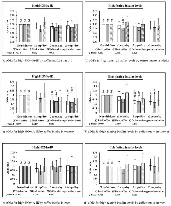 APA StyleChoi, S., Park, T., & Je, Y. (2025). Association Between Coffee Consumption and Glucose Metabolism Markers in Korean Adults. Nutrients, 17(9), 1484. https://doi.org/10.3390/nu17091484