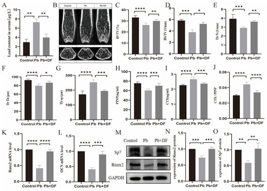 3.2. DF Improved Bone Microstructure Damage in Pb-Exposed Mice