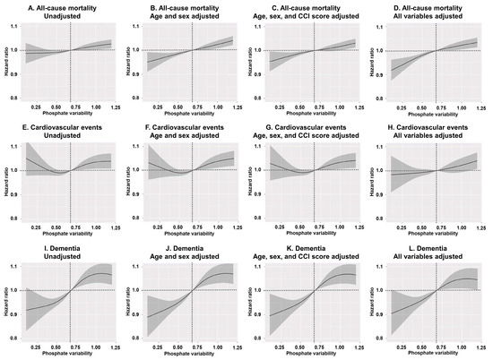The following supporting information can be downloaded at: https://www.mdpi.com/article/10.3390/nu17091528/s1, Table S1. Medication types and corresponding Health Insurance Review and Assessment Service codes; Table S2. Patient clinical characteristics of the unweighted cohort; Table S3. HR and 95% CI for all-cause mortality by phosphate variability quartile in the weighted cohort (Q1 as the reference group); Table S4. HR and 95% CI for cardiovascular events by phosphate variability quartile in the weighted cohort (Q1 as the reference group); Table S5. HR for dementia by phosphate variability quartile in the weighted cohort (Q1 as the reference group); Figure S1. Propensity score balance; Figure S2. Spline curves depicting the association between phosphate variability and (A–D) all-cause mortality, (E–H) cardiovascular events, and (I–L) dementia (hazard ratio and 95% confidence interval).