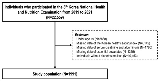 Kim M, Koh JH, Cho JM, Cho S, Lee S, Huh H, Kim SG, Jung S, Kang E, Park S, et al. Association Between Healthy Dietary Patterns and Chronic Kidney Disease in Patients with Diabetes: Findings from Korean National Health and Nutrition Examination Survey 2019–2021. Nutrients. 2025; 17(9):1600. https://doi.org/10.3390/nu17091600