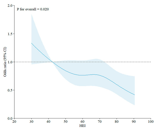 | KHEI, as continuous variable | 525 (26.4) | 0.99 (0.98, 1.00) | 0.06 | 0.98 (0.97, 0.99) | <0.001 | 0.98 (0.97, 0.99) | <0.001 | 0.98 (0.97, 0.99) | 0.002 |
